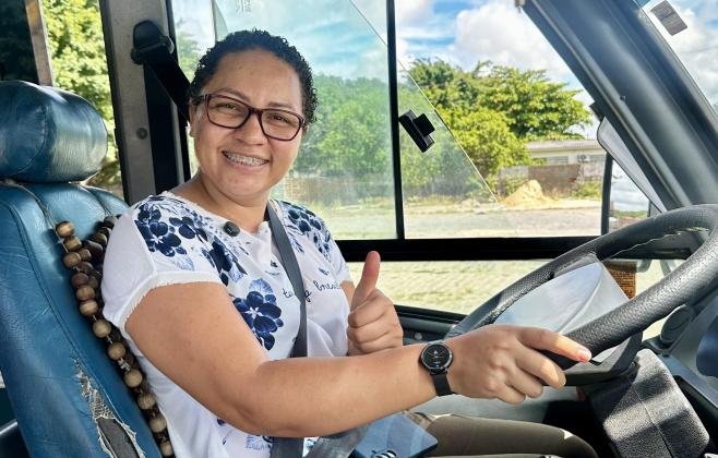 Ao assumir o volante de um micro-ônibus, a auxiliar administrativa reafirma um desejo antigo: ampliar horizontes. “De primeira, quando eu cheguei aqui, eu achei muito impactante. Até então eles ficavam olhando para você, talvez pensando: “O que é que essa mulher tá fazendo aqui? É muito estranho””, contou. Ainda assim, ela não recuou. Ao contrário. Para Jamily, dar esse passo é também abrir caminho para outras mulheres. “Olhe, eu digo para qualquer mulher que não fique no comodismo e não pense que isso é só do homem. Hoje não tem mais aquele negócio: “Ah, isso é só um homem quem faz”. Não. Você tem capacidade suficiente de ir lá e fazer. Tem curiosidade? Vá lá e faça.”