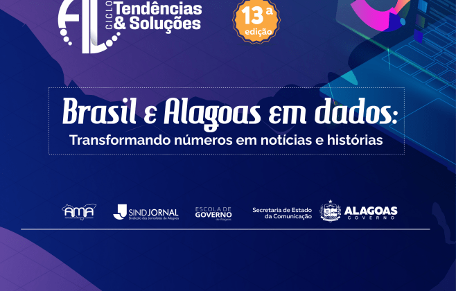 A Secretaria de Estado da Comunicação vai realizar, no próximo dia 19, a 13ª edição do Tendências e Soluções. O encontro acontecerá no Auditório da Associação dos Municípios Alagoanos (AMA), das 9 às 12h, e terá como tema “Brasil e Alagoas em Dados: Transformando números em notícias e histórias”. As vagas são limitadas e incrições podem ser feitas pelo link.