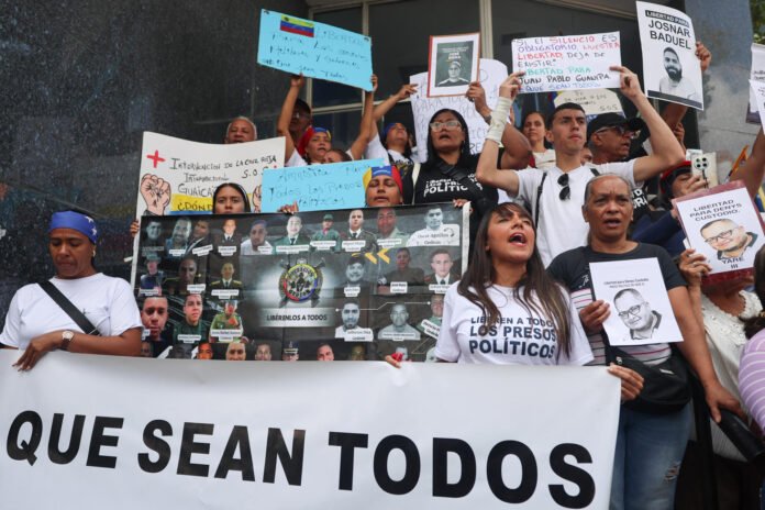 Familiares de presos políticos realizaram nesta terça-feira (10) um protesto na região da Assembleia Nacional da Venezuela, em Caracas, para protestar contra a lei de anistia proposta pelo chavismo.