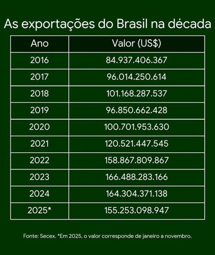 O que se testemunhou neste decênio foi uma transição de “celeiro do mundo” para uma “potência tecnológica e comercial de alta eficiência”. Se em 2016 o setor registrava faturamentos na casa dos US$ 84,9 bilhões, o salto para o recorde de US$ 166,4 bilhões em 2023 simboliza um amadurecimento estrutural, impulsionado pela resiliência das cadeias produtivas e pela valorização estratégica das hard commodities.