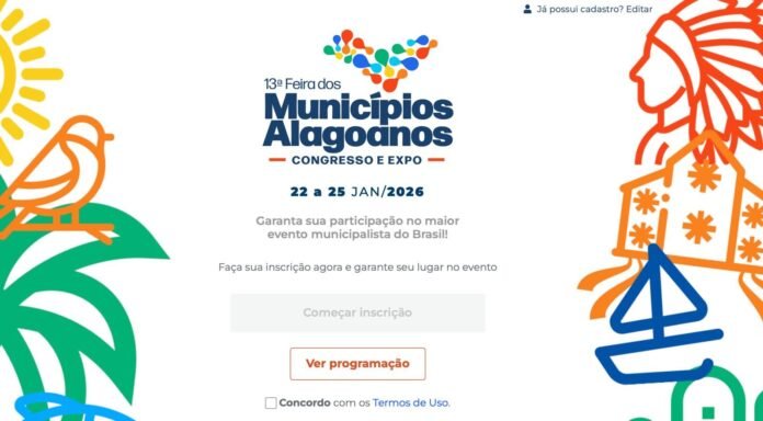 A Associação dos Municípios Alagoanos (AMA) abriu oficialmente, nesta sexta-feira, dia 2, as inscrições para o Congresso da 13ª Feira dos Municípios Alagoanos 2026, considerado o maior evento municipalista do Brasil. O congresso será realizado entre os dias 22 e 24 de janeiro de 2026, integrando a programação da Feira dos Municípios Alagoanos, que acontece de 22 a 25 de janeiro de 2026.