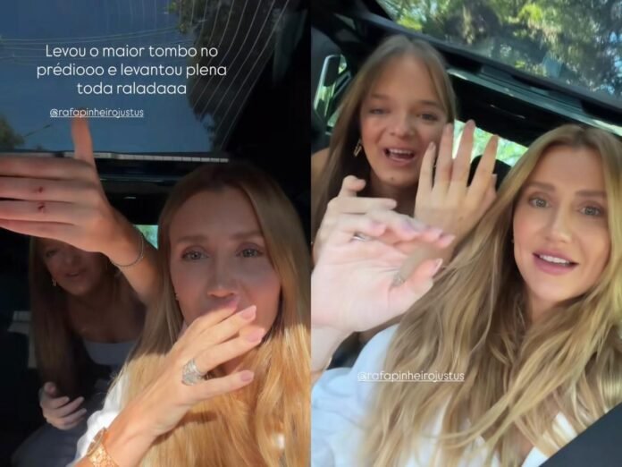 Ana Paula Siebert, de 38 anos, se divertiu ao ver a enteada Rafaella Justus, de 15, levando um tombo numa escada do prédio. A filha de Roberto Justus mostrou no Instagram da madrasta, no domingo (22), os ferimentos na mão causados pela queda. A modelo se divertiu com a situação.”Eu tinha que estar filmando. Eu sei que a gente não pode filmar a desgraça alheia, mas ela caiu e levantou plena para não passar vergonha com o porteiro, com uma cara de como se nada tivesse acontecido”, relatou Siebert, que fez um elogio à menina: “Você é muito boa atriz!”.Rafa disse ter machucado as mãos e os joelhos. Ela comparou o curativo do dedo anelar a uma aliança de namoro, o que incentivou sua madrasta a perguntar “e os namorados?”. Siebert, então, deixou um recado ao futuro membro da família.”Se você não quer ser exposto, não namore a Rafa. E não é só pela Rafa, mas pela família inteira. Vai ser postado pela madrasta, pelas irmãs, pelas cunhadas, pelo pai, pela mãe [Ticiane Pinheiro], pelo padrasto [César Tralli], pela avó… por todo mundo”, avisou.ASSISTA AO VÍDEO:Ana Paula Siebert se diverte com tombo de Rafaella Justus