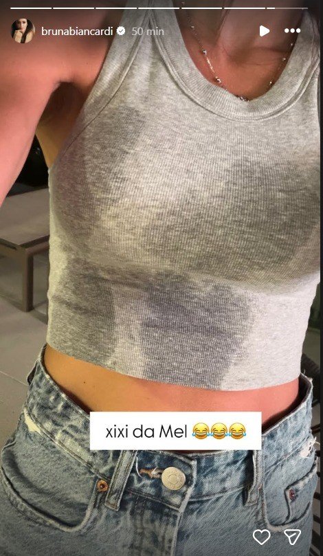 Bruna Biancardi tirou a sexta-feira (27) para curtir ao lado das filhas, Mavie, de 2 anos, e Mel, de 8 meses, do relacionamento com Neymar. Nas redes sociais, a empresária compartilhou uma situação inesperada com a caçula. Na imagem, é possível ver a camiseta da influenciadora toda molhada de xixi. “Xixi da Mel”, escreveu, com emojis de risada.Momentos antes, Bruna havia publicado registros brincando com Mavie, fazendo massa de pizza, enquanto os cachorros descansavam ao lado.Bruna Biancardi mostra ‘perrengue’ com a filha caçulaReprodução/InstagramNos últimos dias, a influenciadora se emocionou ao assistir, pela primeira vez, a primogênita fazer aula de ginástica rítmica. “Eu e Mel assistindo à primeira aula de Ginástica Rítmica da Mavie”, começa. “Eu e minha irmã fizemos GR [ginástica rítmica] por anos. Muito doido estar vendo a minha filha na aula hoje, com a minha outro filha no colo”, completa emocionada.Momento de Bruna Biancardi e MavieReprodução/InstagramBruna Biancardi curte ao lado das filhasReprodução/InstagramBruna Biancardi curte o diaReprodução/Instagram