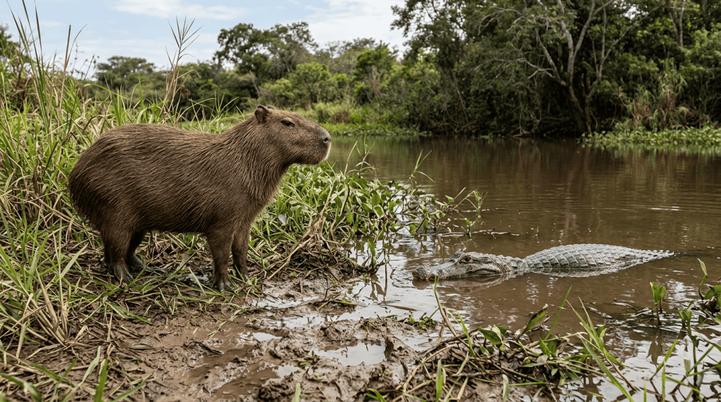 Capivaras sabem que crocodilos n?o atacam? A conviv?ncia entre esses animais chama aten??o em rios e lagoas da Am?rica do Sul. Em muitas imagens, capivaras aparecem tranquilas ao lado de jacar?s, o que levanta curiosidade cient?fica. Por?m, esse comportamento n?o significa confian?a absoluta, e sim uma forma sofisticada de avalia??o de risco na natureza.
