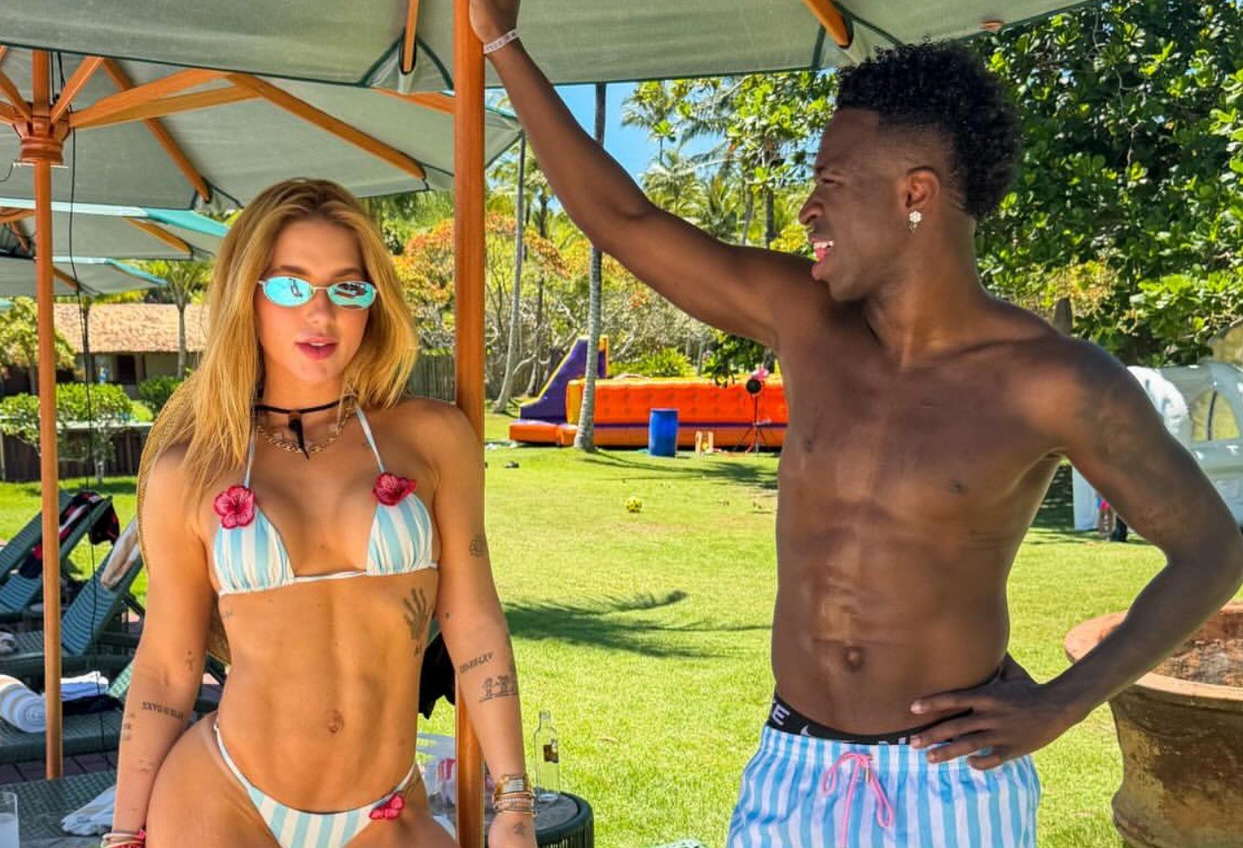 Virginia Fonseca, de 26 anos, movimentou as redes sociais na manhã desta sexta-feira (26) ao compartilhar um álbum romântico ao lado de Vini Jr., de 25, diretamente de Trancoso, no sul da Bahia. Em clima de romance, a influenciadora arrancou suspiros dos seguidores ao publicar duas fotos com o jogador de futebol.Nos registros, o casal aparece curtindo um dia de sol com looks combinando em tons de azul. Virginia apostou em um biquíni azul com estampa listrada e flores, enquanto Vini Jr. surgiu com um bermudão também azul, listrado. Virginia e Vini Jr.Reprodução/InstagramNa primeira foto, o atacante observa Virginia com um olhar apaixonado. Já no segundo clique, os dois protagonizam um beijão, deixando claro o clima de romance. A apresentadora legendou a publicação com a frase: “Sexta difícil por cá”, acompanhada de emoji de risada.Nos comentários, internautas se empolgaram. O próprio Vini deixou corações. “Se não for pra sair combinandinho assim, nem namoro”, brincou Tana Lobo, decoradora das festas dadas pela empresária. “Por onde ela passa, para, todo mundo fica olhando”, afirmaram.Virginia Fonseca e Vini Jr.Reprodução/InstagramVirginia Fonseca e o namorado, Vini Jr.Reprodução/InstagramVirginia Fonseca e o namorado, Vini Jr.Reprodução/Instagram