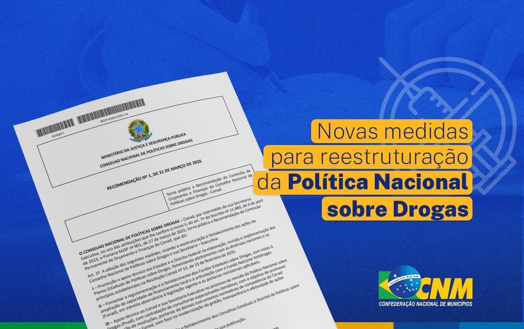 O Conselho Nacional de Políticas sobre Drogas (Conad) publicou, no dia 31 de março, a Recomendação 1/2026, propondo medidas para a reestruturação e fortalecimento da Política Nacional sobre Drogas (Pnad). Para a Confederação Nacional de Municípios (CNM), a normativa deu ênfase na atuação dos Estados e do Distrito Federal e, por conta disso, perdeu a oportunidade de fortalecer a governança sobre o tema a nível municipal.
