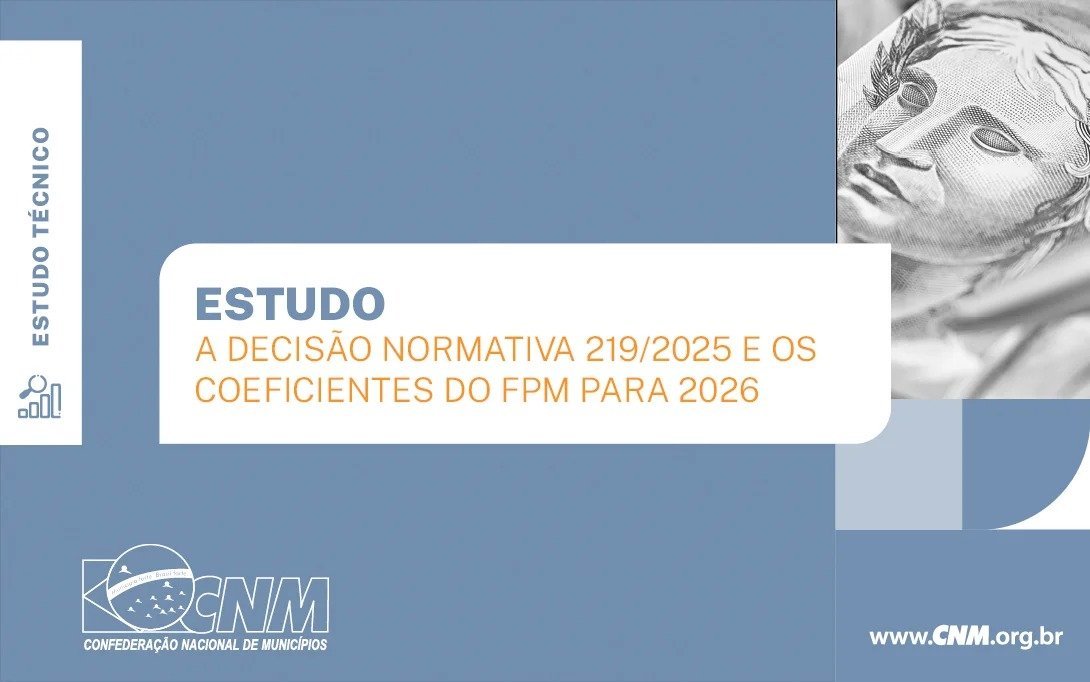 A Confederação Nacional de Municípios (CNM) publicou nesta sexta-feira, o estudo A Decisão Normativa 219/2025 e os coeficientes do FPM para 2026. O material apresenta os impactos da decisão, publicada no mês de novembro, realizando ainda um comparativo com os coeficientes relativos a 2025, bem como mostra os efeitos do redutor financeiro estabelecido na Lei Complementar (LC) 198/2023 para os Municípios que apresentariam queda brusca de coeficiente na ausência da normativa.