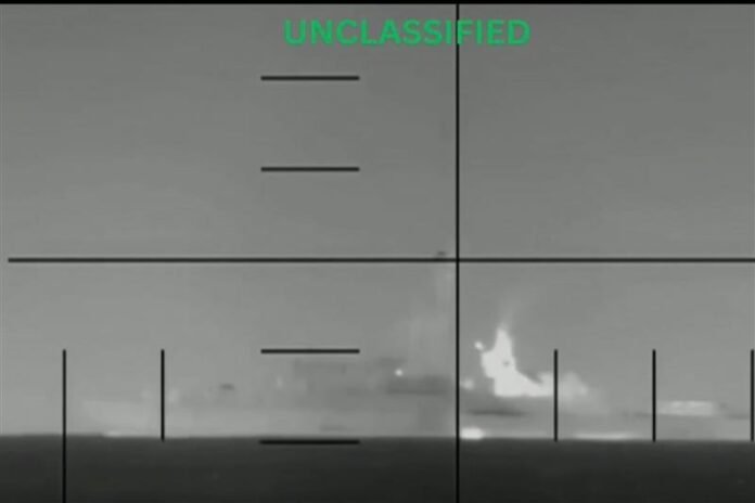 O Departamento de Defesa dos EUA divulgou um vídeo da operação militar desta quarta-feira. Veja abaixo o momento do disparo de torpedo:
