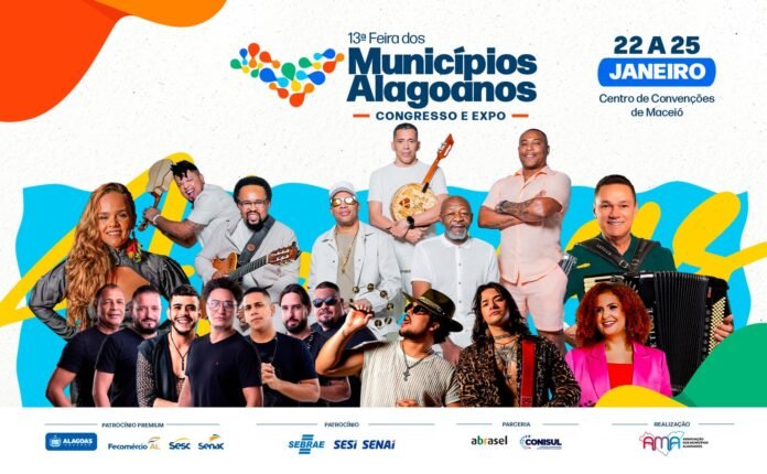 Além de debates técnicos, exposições institucionais e experiências gastronômicas, a Feira dos Municípios Alagoanos – Congresso e Expo 2026 também será palco de uma programação cultural diversa, reunindo atrações locais e nacionais. As apresentações artísticas acontecem entre os dias 22 e 25 de janeiro, no Centro Cultural de Exposições Ruth Cardoso, e são resultado de uma parceria com a Fecomércio, por meio do Sesc.