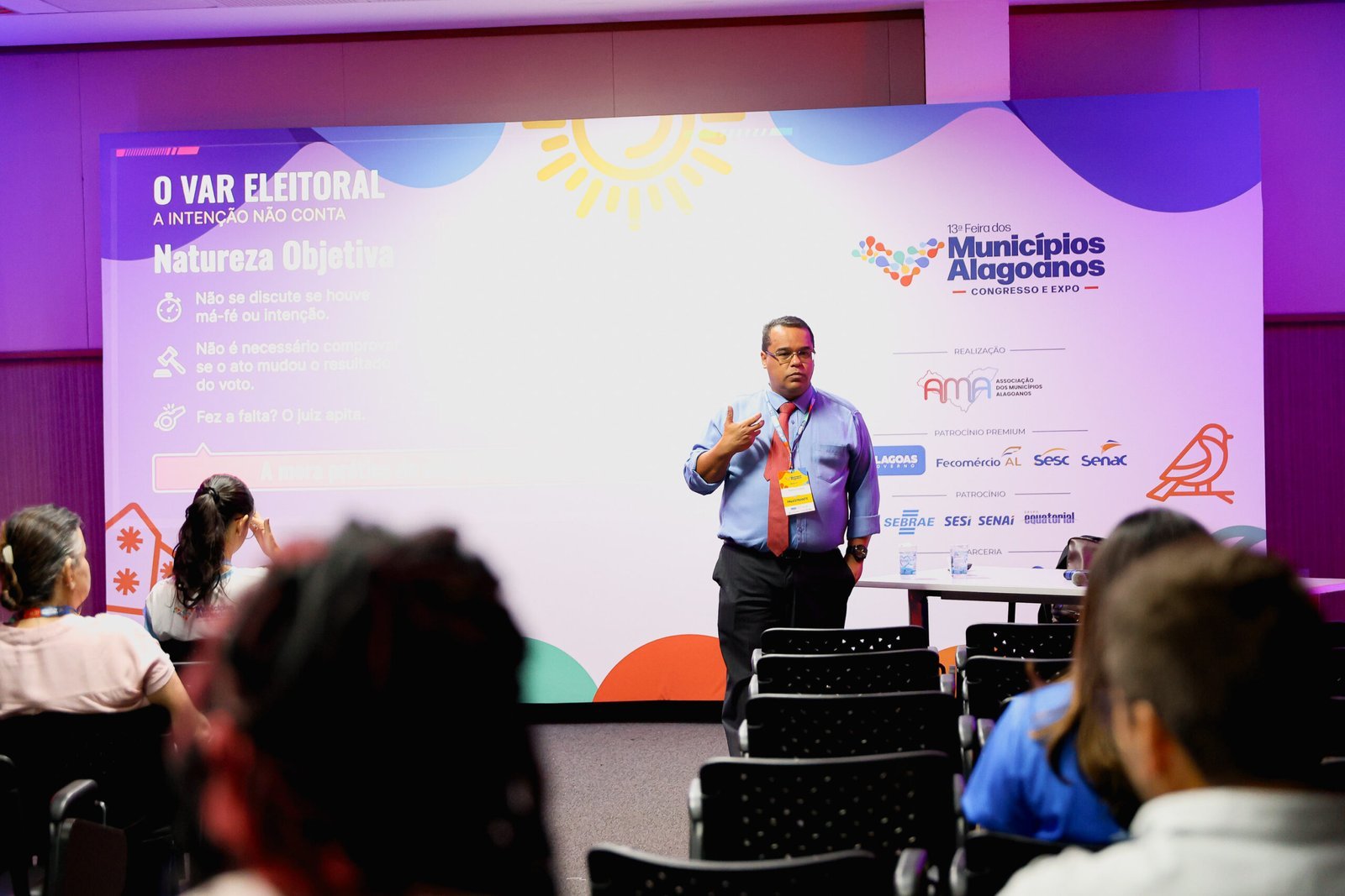 Uma das palestras foi do doutor em Direito, Gustavo Ferreira, que utilizou uma analogia criativa e direta para explicar a complexidade da legislação: o paralelo entre a disputa eleitoral e uma Copa do Mundo.
