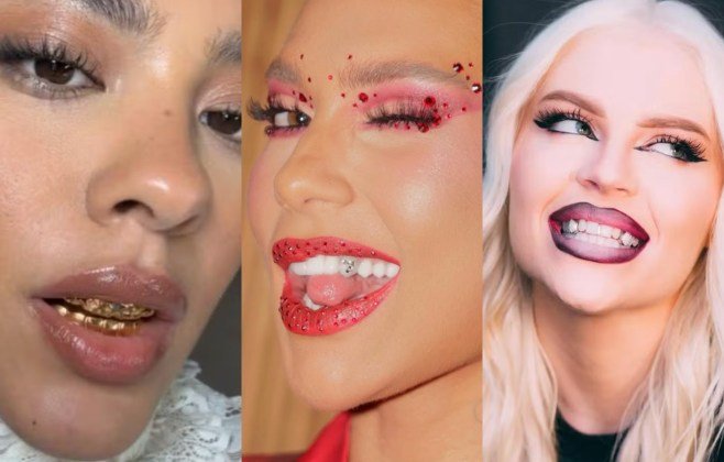 Virginia Fonseca, de 26 anos, fez sua grande estreia na Grande Rio na madrugada na quarta-feira (18), e não foi só sua fantasia tecnológica ou perrengues enfrentados que chamaram a atenção dos internautas. A empresária viralizou com uma homenagem inusitada ao namorado, Vini Jr: ela cravejou um dos dentes com brilhantes em formato de 7, número do jogador no Real Madrid.Virginia Fonseca e Vini Jr.Reprodução/Instagram e Getty ImagesOs acessório se chamam tooth gems, gemas dentais em tradução livre, e viraram febre entre as celebridades americanas nos anos 2000. Colocar piercings nos dentes é rápido, reversível e tem procedimento muito semelhante à colagem de braquetes de aparelhos ortodôntico. oVirginia FonsecaReprodução/ InstagramAlém dos piercings dentais, também estão na moda os “grillz” – nome dado a “capas”, de metal em quase toda a arcada dentária ou em dentes específicos. A atriz Bella Campos é fã de carteirinha dos artigos de moda e tem uma coleção, incluindo uma joia de ouro para o dente canino e um item que cobria tanto a parte inferior quanto a superior dos dentes.Grillz de Bella CamposReprodução/InstagramGrillz de Bella CamposReprodução/InstagramQuem também adquiriu modelos banhado em ouro de 18 quilates foi MC Daniel em 2024. “Eu gosto da parada”, argumentou. Ele mostrou três modelos do acessório: placas de prata banhadas em ouro de 18 quilates — avaliada em R$11,9 mil — outra de prata banhada a ouro rosé – com valor de R$ 15,1 mil -, e um grillz de prata 950 cravejado de zircônias – na casa dos R$ 13,5 mil. Grillz de MC DanielReprodução/InstagramGrillz de MC DanielReprodução/InstagramGrillz de MC DanielReprodução/InstagramEles não são os únicos brasileiros a aderir à moda, que cresceu na cultura do hip hop dos Estados Unidos nos anos 1990 e é usada hoje por ícones como Madonna. Os grillz e caps – facetas que cobrem um dente só – sempre foram queridinhos dos rappers, como Matuê e Oruam, mas se tornaram febre entre artistas do pop recentemente.Luísa Sonza, Ludmilla, Vivi Wanderley, Rafaella Santos e Pabllo Vittar são alguns exemplos de celebridades que se encantaram por tais joias personalizadas – já que as peças precisam ser feitas sob medida para se adaptar aos dentes de cada cliente. Para alcançar tal resultado, lojas apostam em modelagens 3D, digitais ou moldes comuns.MatuêReprodução/InstagramOruamReprodução/InstagramVivi WanderleyReprodução/InstagramPabllo VittarReprodução/InstagramLuísa SonzaReprodução/InstagramLudmillaReprodução/Instagram