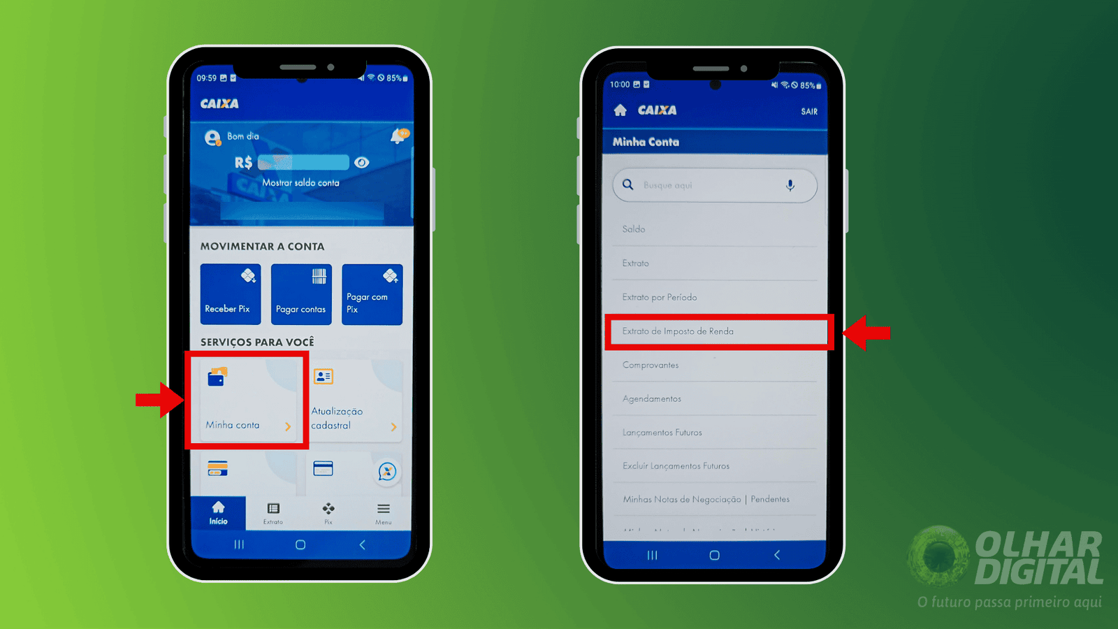 - Acesse o app Caixa, toque em “Minha conta” e vá em “Extrato de Imposto de Renda”