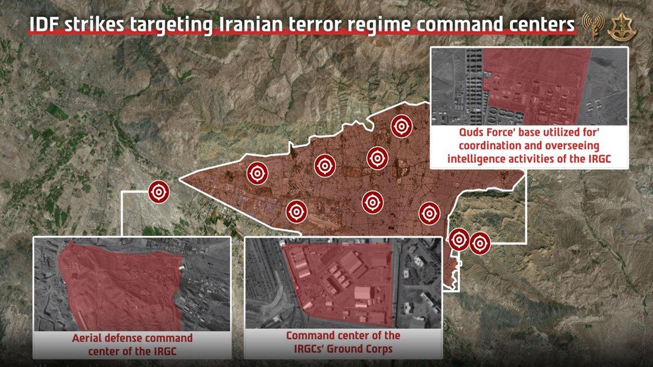 Além do centro de comando em Teerã, as forças israelenses também atingiram quartéis-generais da defesa aérea da Guarda Revolucionária, instalações das forças terrestres, diversos outros centros de inteligência e fábricas ligadas à produção de armamentos e mísseis no Irã.