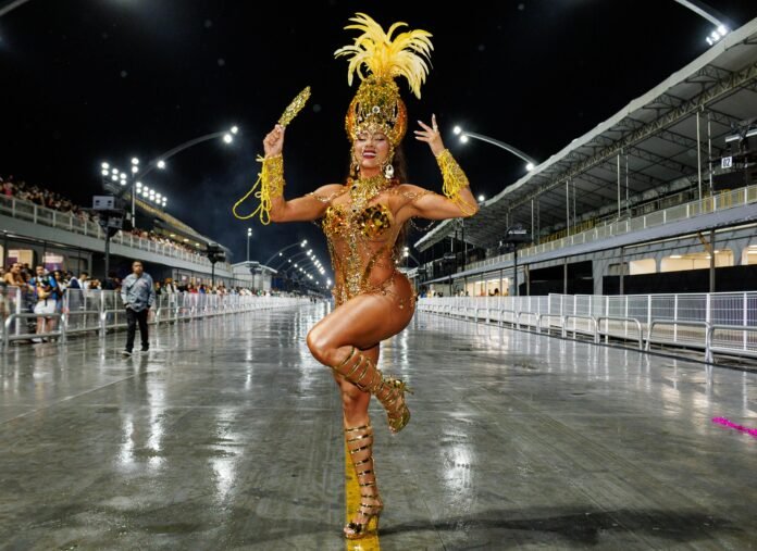 Juju Salimeni, 39 anos de idade, caprichou no look para o ensaio técnico da Barroca Zona Sul, escola de samba paulistana em que desfilará como rainha de bateria no Carnaval 2026. A apresentadora e musa fitness escolheu um traje na cor dourada para a apresentação no Sambódromo do Anhembi na noite de sábado (24).”Fui vestida como deusa do ouro. Os ensaios são verdadeiros dias de magia”, afirmou Juju, que está à frente dos ritmistas da Barroca desde 2024. O look foi assinado pelo estilista carioca Felipe Rangel e contou com mais de 8 mil cristais espelhados. Ela ainda usou um abebé, uma referência ao espelho usado pela orixá Oxum.O traje usado pela rainha de bateria deu o que falar no Anhembi e nas redes sociais. ‘Luxo”, disse um. “Cada hora ela se supera mais”, afirmou outro. “Deusa perfeita”, escreveu um terceiro. A apresentadora Lívia Andrade, veterana no Carnaval e musa do Salgueiro em 2026, também elogiou a colega: “Monumento”.Juju Salimeni em ensaio técnico da Barroca Zona SulClayton FelizardoJuju Salimeni em ensaio técnico da Barroca Zona SulClayton FelizardoLook de Juju Salimeni para ensaio da Barroca Zona Sul contou com 8 mil cristais espelhadosGuilherme RochaJuju Salimeni capricha em look para ensaio técnico da Barroca Zona SulGuilherme Rocha