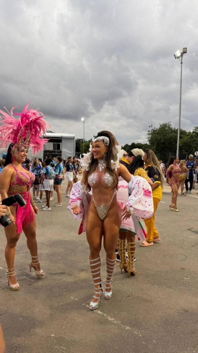 Juju Salimeni usou um look exclusivo no ensaio técnico da Barroca da Zona Sul, neste sábado (17), em no Sambódromo do Anhembi, em São Paulo. Toda bordada a mão, a fantasia tem lírios, símbolo associado à orixá Oxum. A flor onde simboliza paz, serenidade e renovação e atrai boas energias absorvendo tudo que é negativo.Esse é o terceiro ano da musa fitness à frente da bateria da escola de samba paulistana e a roupa carnavalesca foi feita especialmente para o ensaio de hoje pelo stylist Kell Mendes.