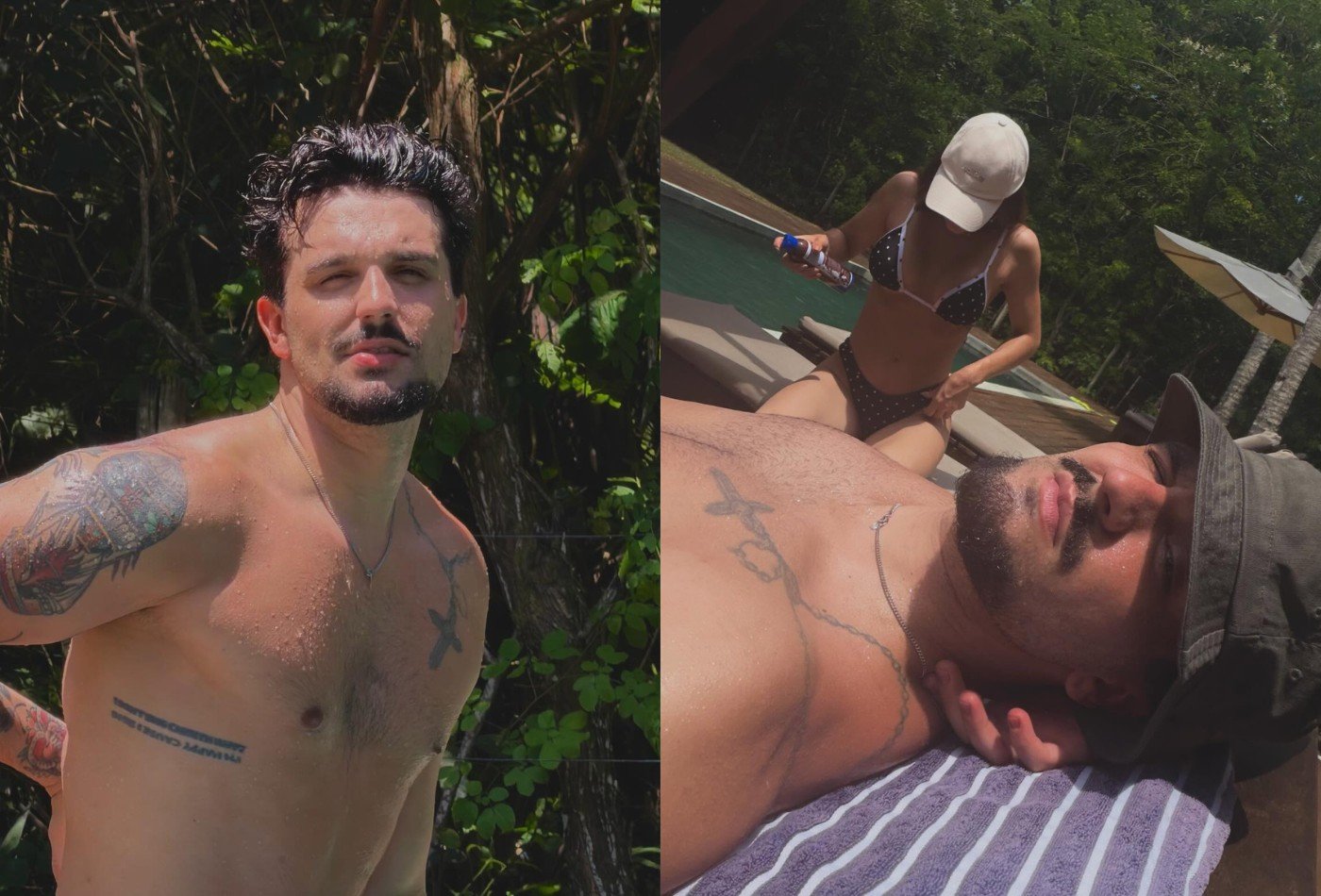 Luan Santana curte dia de descanso em piscina com Jade Magalhães