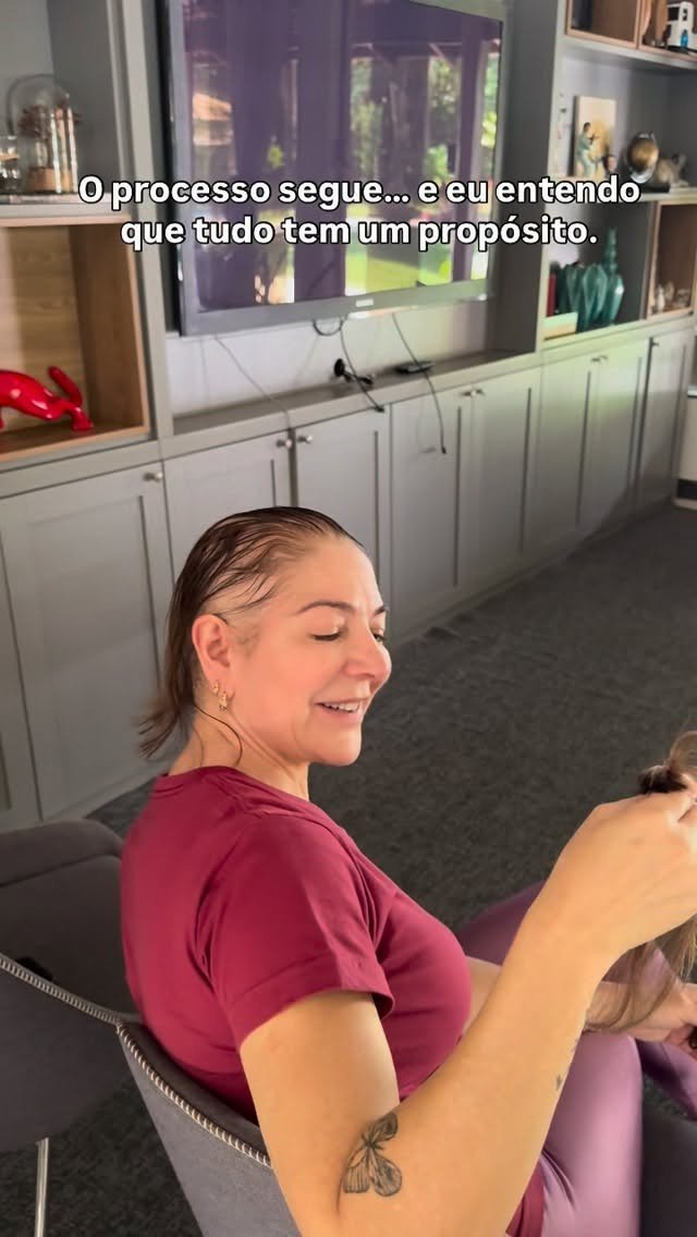 Karina Lucco compartilhou um vídeo sobre o processo do tratamento de alopécia. “O processo segue… E dentro desse processo, hoje foi dia de desapegar. Não foi só sobre cortar o cabelo… Foi sobre soltar o que já não faz mais sentido carregar. Claro que não é fácil. Mas entendo que existem fases em que o desapego é necessário para continuar. Sigo com fé, coragem e o coração em paz”, disse.