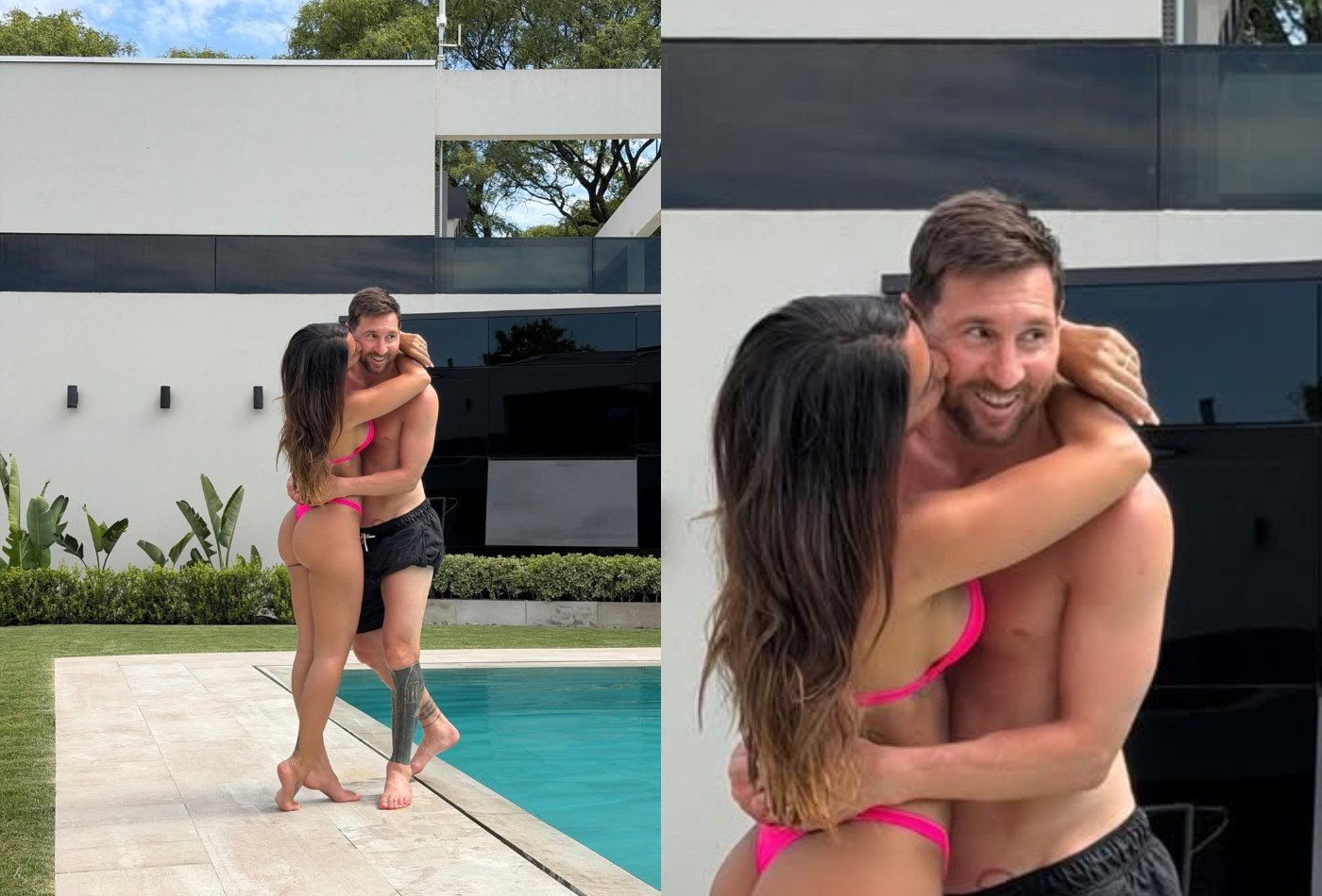 Lionel Messi, de 38 anos, curtiu um momento de descanso ao lado da esposa, Antonela Roccuzzo, de 37, e foi paparicado pela amada durante um dia relax na piscina. Nos registros publicados nesta sexta-feira (16), Antonela aparece agarradinha ao craque, em clima de romance, arrancando elogios dos fãs com as fotos cheias de carinho.A influenciadora colocou um emoji de coração rosa na legenda da publicação. Além da foto com o amado, Antonela também exibiu o shape ao posar de biquíni na área da piscina, arrancando elogios dos seguidores.”Perfeição em uma única foto”, “A excelência existe”, “Que lindo o sorriso de Messi” e “A mulher mais sortuda do mundo” foram alguns dos comentários deixados pelos seguidores na publicação, exaltando o casal e o clima de romance entre eles.Antonela Roccuzzo faz chamego em Messi em dia de descanso na piscinaReprodução/ InstagramAntonela Roccuzzo é casada com Lionel Messi desde 2017. Juntos, eles são pais de Thiago, Mateo e Ciro. A influenciadora é a terceira “WAG” — sigla em inglês para Wives and Girlfriends (esposas e namoradas) de jogadores de futebol — mais seguida do Instagram. Com cerca de 40 milhões de seguidores, Antonela fica atrás de Georgina Rodríguez, noiva de Cristiano Ronaldo, e de Virginia Fonseca, namorada de Vini Jr.Antonela Roccuzzo curte dia de descanso na piscinaReprodução/ InstagramAntonela Roccuzzo curte dia de descanso na piscinaReprodução/ InstagramGalerias Relacionadas