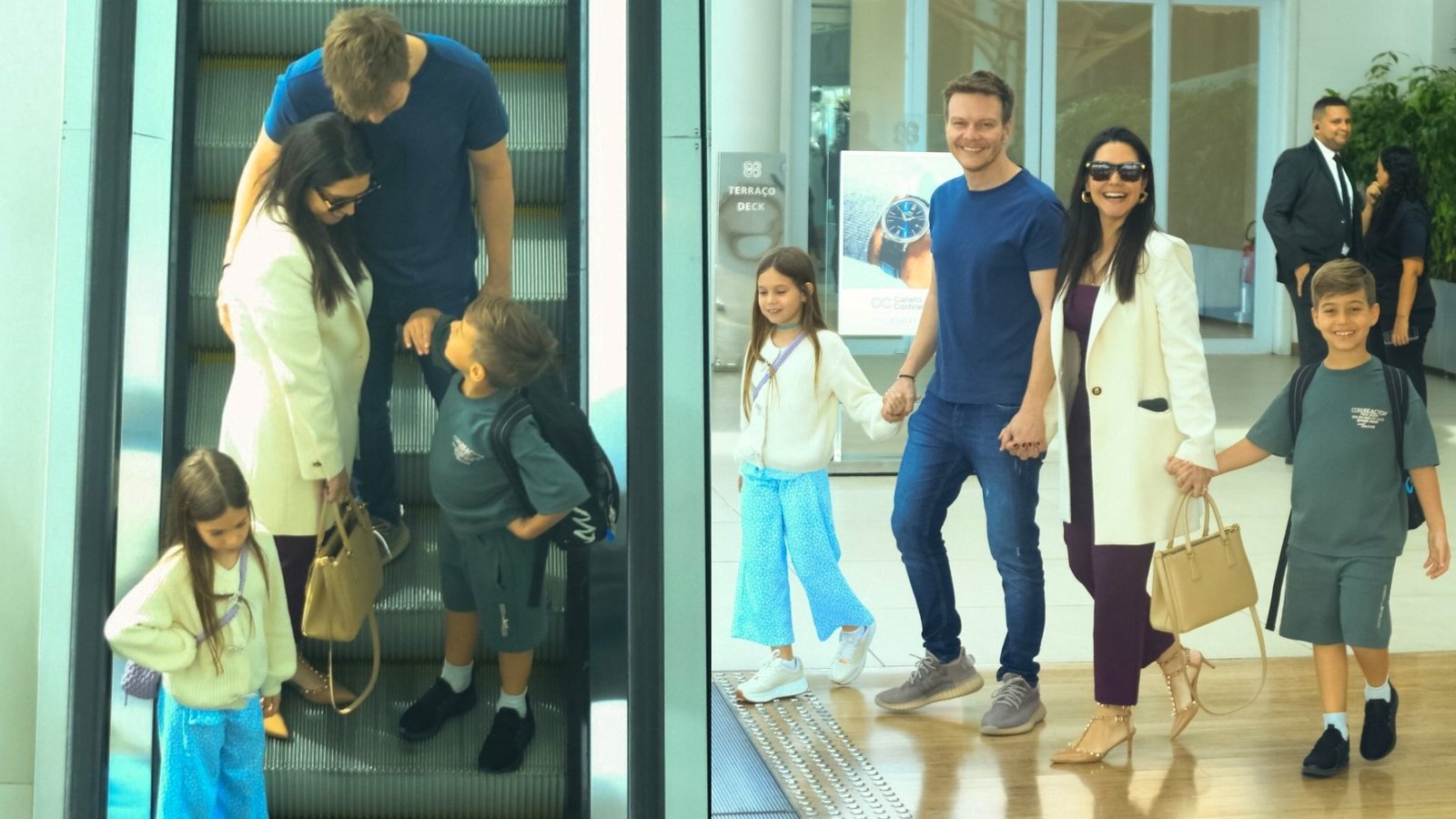 Michel Teló, 45 anos, e Thais Fersoza, de 41, encararam a ponte aérea neste último sábado (28) e foram passar o domingão no Rio de Janeiro. Na tarde de hoje, eles foram fotografados por paparazzi no Shopping Village Mall, que fica na Barra da Tijuca, muito bem acompanhados dos filhos. Melinda, que atualmente está com nove anos, e Teodoro, de oito, mostraram que o carisma é de família e posaram sorridentes para os fotógrafos. Enquanto a menina passou a maior parte do tempo de mãos dadas com o pai, Teodoro ficou ao lado da mãe, sorrindo o tempo todo, batendo papo e ostentando sua mochila do Pikachu. Neste último sábado (28), antes de embarcar para a capital fluminense, Thais e Teló encararam um compromisso de trabalho em São Paulo. O casal participou da pré-estreia da animação Cara de Um, Focinho de Outro, da Disney/Pixar. No filme, a atriz dubla a personagem Diane, uma tubarão-fêmea. Veja fotos do passeio em família: Michel Teló e Thais FersozaEdMichel Teló e Thais FersozaEdson Douglas/AgNewsMichel Teló e Thais FersozaEdson Douglas/AgNewsMichel Teló e Thais FersozaEdson Douglas/AgNews