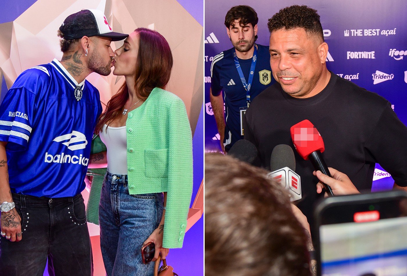 Em aparição rara juntos, Neymar, de 33 anos de idade, e a esposa, a influenciadora Bruna Biancardi, de 31 anos, trocaram beijos na final da Copa do Mundo da Kings League entre Brasil e Chile, que rolou no Allianz Parque, em São Paulo, na noite deste sábado (17).No local, Neymar causou alvoroço e atendeu fãs, inclusive reencontrando o ator e piloto Caio Castro. O ex-jogador Ronaldo, o Fenômeno, também marcou presença, assim como o filho mais velho, o DJ Ronald, que homenageou o pai com uma camisa.Neymar e Bruna BiancardiAgNewsNeymar e Bruna BiancardiEdu Araujo/AgnewsNeymar e Bruna BiancardiEdu Araujo/AgnewsNeymar e Bruna BiancardiAgNewsNeymar e Bruna BiancardiEdu Araujo/AgnewsNeymar e Caio Castro (esq)Edu Araujo/AgnewsNeymar e Caio Castro (esq)Edu Araujo/AgnewsNeymar e Caio CastroEdu Araujo/AgnewsRonaldoEdu Araujo/AgnewsRonaldoEdu Araujo/AgnewsRonaldEdu Araujo/AgnewsRonaldEdu Araujo/AgnewsRonaldEdu Araujo/AgnewsCaio CastroEdu Araujo/AgnewsFausto CarvalhoEdu Araujo/Agnews