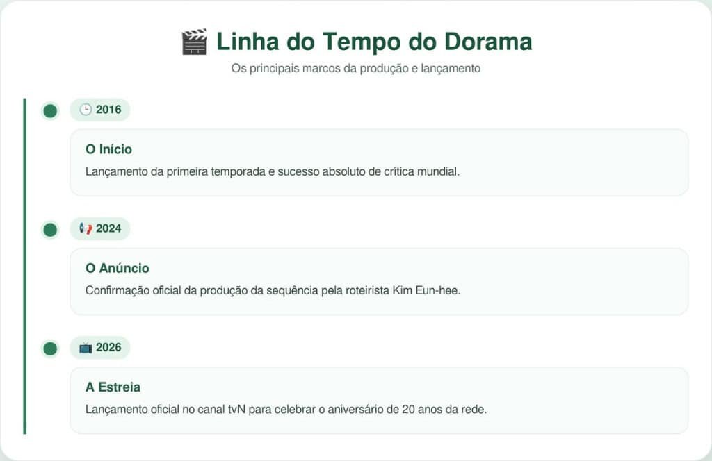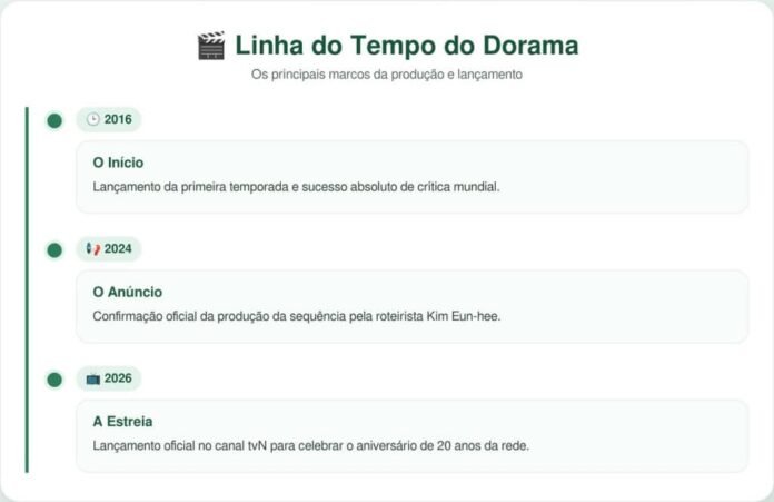 Conforme revelado em um artigo do portal Beautipin, a s?rie est? programada para estrear no final de 2026. Este lan?amento celebra o 20º anivers?rio da emissora tvN, consolidando-se como o t?tulo mais aguardado da d?cada para os amantes do g?nero.