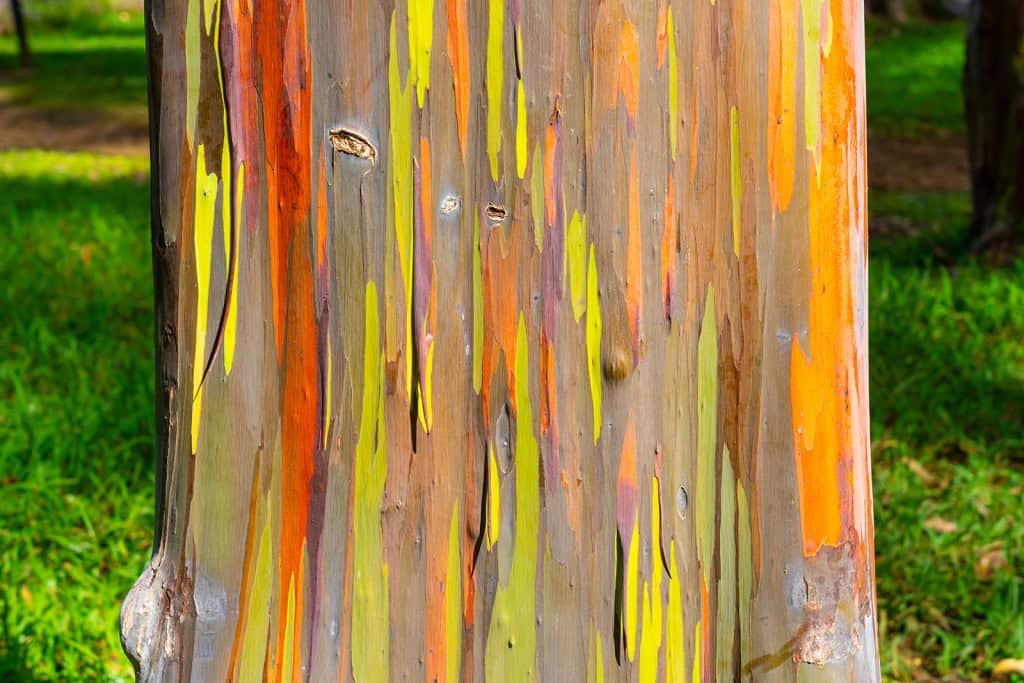 Sem dúvida, o que mais chama atenção é o tronco colorido, que exibe faixas em tons de verde, amarelo, laranja, vermelho, azul e roxo. As cores surgem de forma natural e mudam ao longo do tempo. Apesar do impacto visual, ainda há poucos estudos detalhando exatamente como esse processo ocorre.
