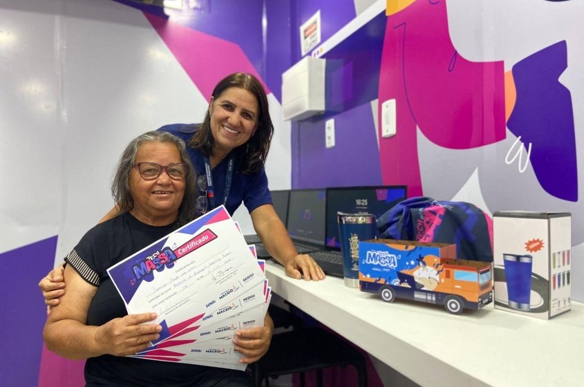Qualquer pessoa com mais de 14 anos de idade pode participar do Tech Massa. Foi essa característica que chamou a atenção da aposentada Ivanilza Araújo, moradora do Vergel do Lago. Ela não se contentou com apenas um aprendizado; sua sede de conhecimento a fez colecionar sete certificados do programa.