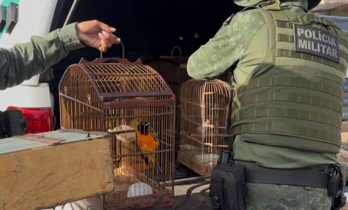 No sábado (24), durante ação de fiscalização ambiental na feira livre no bairro Levada, em Maceió, guarnições Supervisão e Ambiental 01 do Batalhão de Polícia Ambiental (BPA), com apoio do Serviço de Inteligência da unidade, realizaram a apreensão de 35 aves silvestres. Uma delas era mantida em cativeiro e outras 34 estavam expostas à venda de forma ilegal.