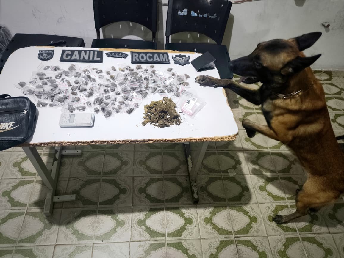 Outro caso de tráfico foi atendido em Arapiraca pelo Canil e pela Rocam (Rondas Ostensivas Com Apoio de Motocicletas) do 3º BPM. Um homem de 19 anos foi preso. Com ele, foram apreendidos 300g de maconha divididas em bombinhas e 80g da mesma droga, além de um rolo de plástico e uma balança de precisão.