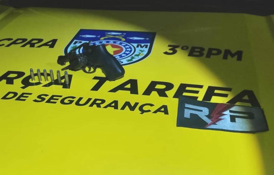 A segunda ocorrência do 3º BPM foi registrada na madrugada desta segunda-feira (16). Porte ilegal de arma de fogo em Taquarana. Um indivíduo do sexo masculino de 24 anos foi preso com um revólver calibre 38 contendo seis munições intactas. A guarnição realizava policiamento a pé em evento carnavalesco no Centro quando percebeu um indivíduo em atitude suspeita. O tempo todo, parecia ajustar um volume que carregava na cintura.