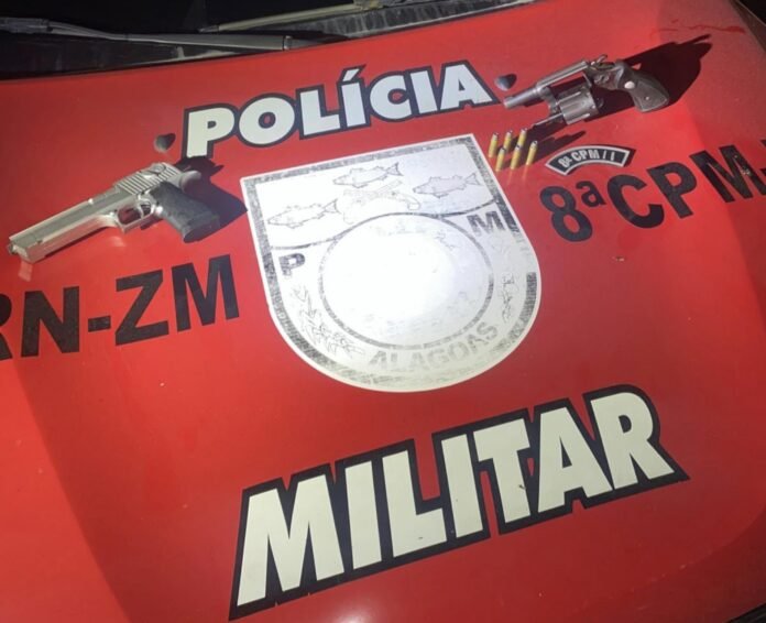 Ao perceber a aproximação da viatura, dois suspeitos tentaram fugir. Um deles foi alcançado e detido portando um revólver calibre .38 com seis munições intactas.