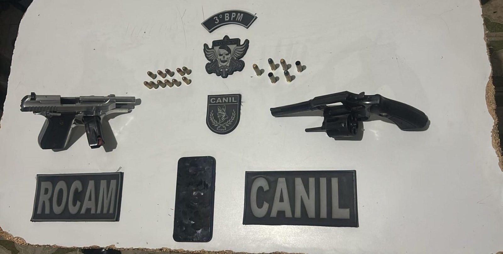 Foto: Ascom PMAL / Polícia apreendeu uma pistola inox calibre .380 e um revólver calibre .38