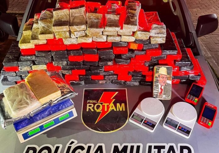 A Polícia Militar, através de equipes do Batalhão de Rotam, apreendeu mais de 104 quilos de entorpecentes em 24 horas, durante ocorrências registradas nas cidades de Maceió e Rio Largo. As ações aconteceram entre quarta (6) e quinta (7).