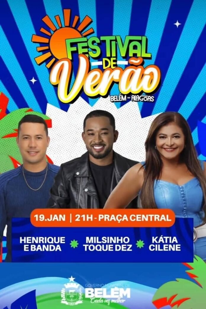No próximo dia 19 de janeiro, o município de Belém vai ferver ao som de grandes sucessos dos cantores Henrique e Banda; Milsinho Toque Dez e Kátia Cilene. Em sua segunda edição, o Festival de Verão promovido pela prefeitura, reúne belenenses e visitantes, aquece a economia e movimenta a cidade.