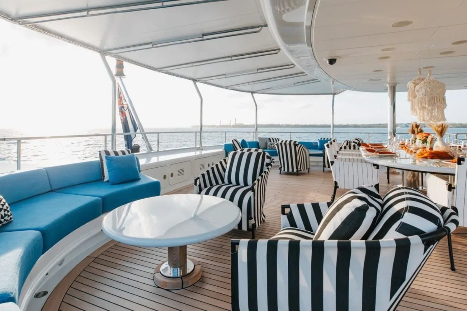 Destaques: ? o maior iate dispon?vel na faixa de aproximadamente US$ 40 milh?es, oferecendo uma rela??o entre tamanho e valor considerada competitiva. Possui um layout incomum de sete cabines, permitindo acomodar at? 14 convidados, o que amplia seu potencial para fretamento. O conv?s de proa conta com ?rea de estar equipada com hidromassagem e guarda-s?is.