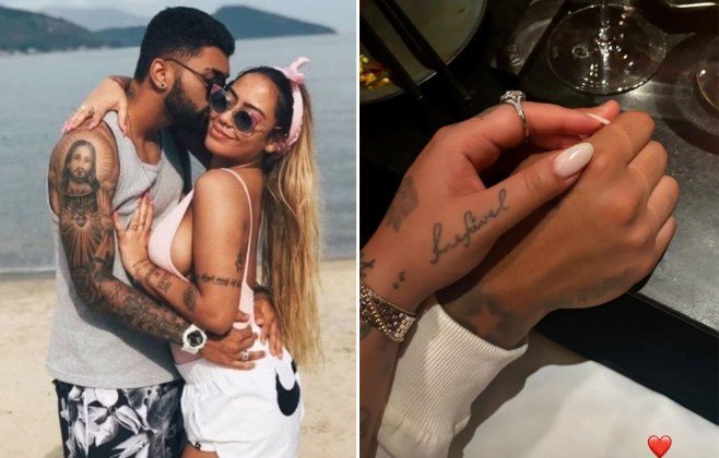 Rafaella Santos, de 29 anos de idade, irmã de Neymar, de 33 anos, postou uma foto de um jantar romântico com o namorado, Gabigol, 29. A influenciadora, que já revelou estar vivendo ‘vida de casada’ com o jogador, usou seus Stories do Instagram, nesta terça-feira (30), para postar clique de um jantar romântico com o amado. No clique, os dois aparecem de mãos juntinhas e exibindo algumas de suas tatuagens. Além da mão da influencer, é possível ver a mão direita do craque, exibindo uma estrela que o jogador do Cruzeiro tem cravada no punho. Recentemente, Rafaella abriu o coração sobre sua vida ao lado de Gabigol durante participação no novo episódio do Bru Na Cozinha, miniprograma da sua cunhada, Bruna Biancardi, nas redes sociais. Durante o bate-papo, Rafaella brincou sobre a nova rotina doméstica com o jogador. “Estou nesse bate e volta. Quando tenho oportunidade de vir para São Paulo, eu venho para curtir família, amigos, curtir um pouquinho sozinha também, porque vida de casado você sabe como é, a gente quer matar às vezes”, disse brincando.A irmã de Neymar surpreendeu ao admitir que não esperava viver essa experiência tão cedo. “É basicamente aquela vida de casado que eu imaginei que não ia ter. Estou aprendendo, mas assim é gostoso. A gente começa a conhecer um ao outro e o nosso relacionamento hoje tá outra coisa, está maravilhosamente bem”, declarou.”Morar junto é outra coisa, né? Vocês querem ter filhos?”, perguntou a apresentadora. “Ah, meu sonho é ter filhos. Ai, eu quero, eu quero, mas assim, eu quero muito casar, muito”, revelou a influenciadora.Rafaella também falou da decisão de ficar mais ausente das redes sociais. “Hoje as pessoas são muito maldosas. As pessoas ficam deduzindo umas coisas que não tem nada a ver”.Rafaella Santos, irmã de Neymar, posta foto de jantar romântico com GabigolReprodução/InstagramGabigolReprodução/InstagramRafaella Santos, irmã de Neymar, posta foto de jantar romântico com GabigolReprodução/InstagramRafaella revela sonho de ser mãe e fala da ‘vida de casada’ com GabigolReprodução/InstagramRafaella Santos e GabigolReprodução/InstagramGabigol e Rafaella SantosReprodução do Instagram