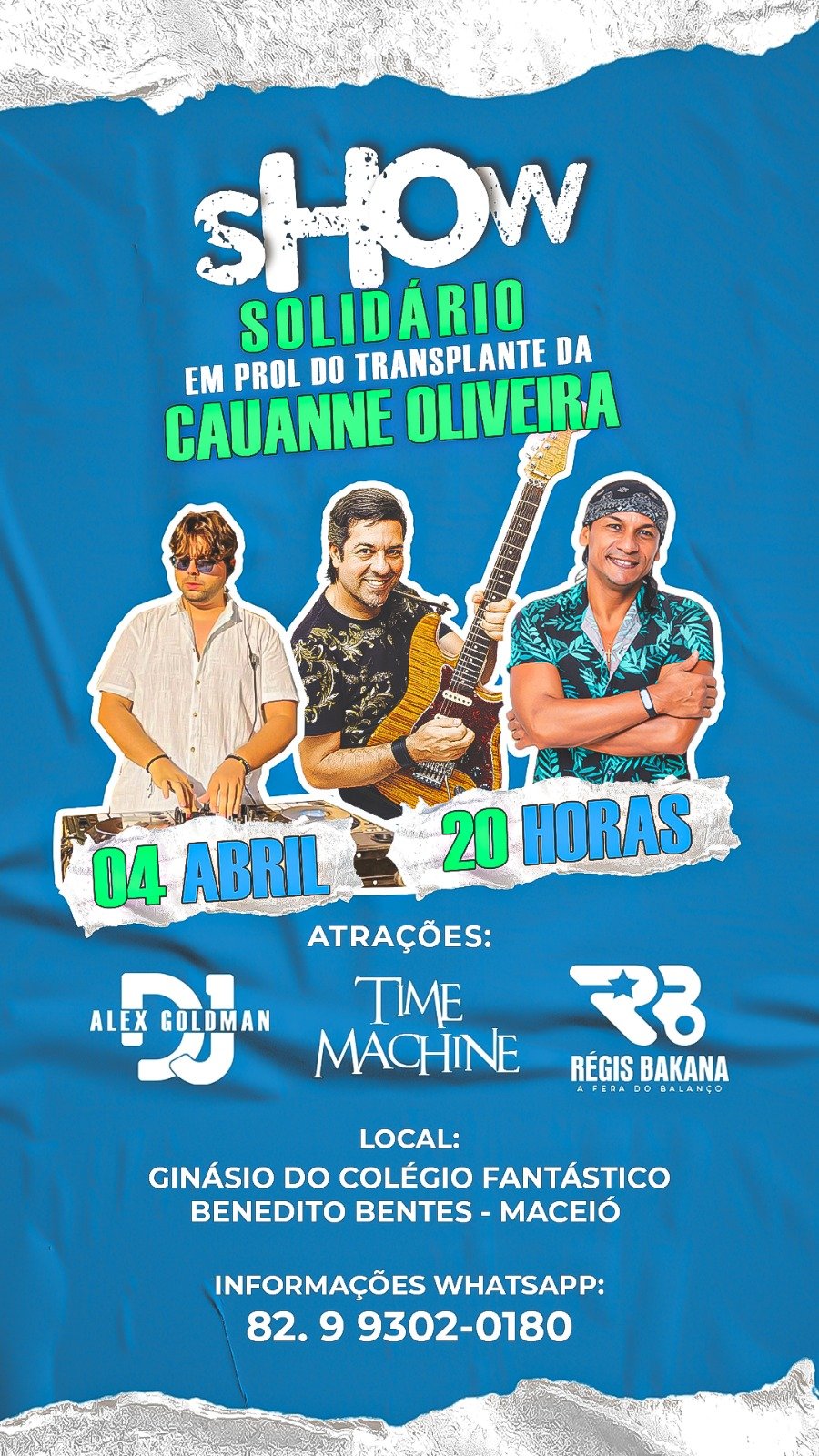 Com a ajuda dos amigos das bandas: Time Machine, Regis Bakana e DJ Alex Goldman, será realizado um show no Ginásio do Fantástico, no Benedito Bentes, no próximo dia 04 de abril. Iniciando às 20h e toda renda do evento será para custear as despesas necessárias.