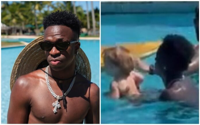 Vini Jr. encantou os internautas ao aparecer em um vídeo compartilhado por Tainá Militão cuidando do pequeno José Leonardo, filho da sua namorada, Virginia Fonseca, com Zé Felipe. O jogador de futebol do Real Madrid brincou com o menino, de apenas um ano, na piscina durante a hospedagem em Trancoso, Bahia, para a celebração do Natal. “Amei o Vini Jr. com o José. Deus abençoe e livre das maldades”, disse uma internauta. “Vini e José. Fofinhos”, escreveu outra pessoa. “O Vini no modo padrasto ativado”, brincou outro.
