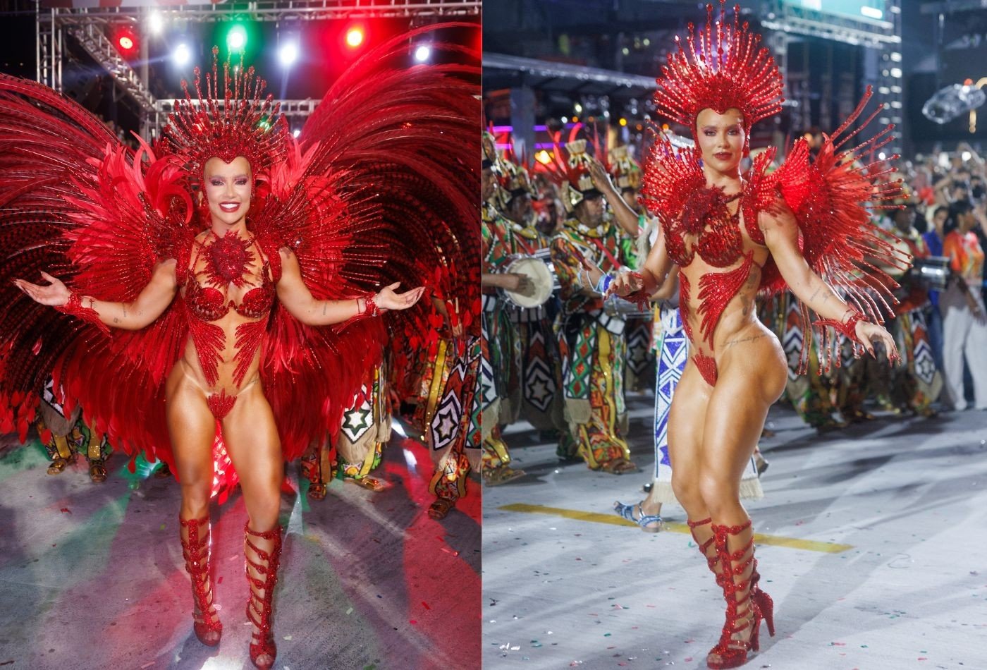 Virginia Fonseca, de 26 anos, rainha de bateria da Grande Rio no Carnaval 2026, cruzou a Marquês de Sapucaí nesta terça-feira (17) e também marcou presença na apuração dos resultados das escolas do Grupo Especial do Rio de Janeiro, nesta quarta (18).Durante o desfile, a influenciadora retirou o costeiro de mais de 15 kg que carregava nas costas — parte da fantasia —, o que gerou polêmica nas redes sociais.Em entrevista ao jornalista Lucas Pasin, ela revelou que já estava programado que o acessório seria retirado ao longo da apresentação e explicou que a decisão fazia parte do planejamento do figurino para a avenida.”Já era uma coisa que a gente já pensava, mas a gente não tinha confirmado com o Jaide, como se poderia. Mas, inclusive, no quarto carrossel que eu postei, tem eu com o costeiro e eu sem, para também dar ênfase no led. Então, isso já estava programado”