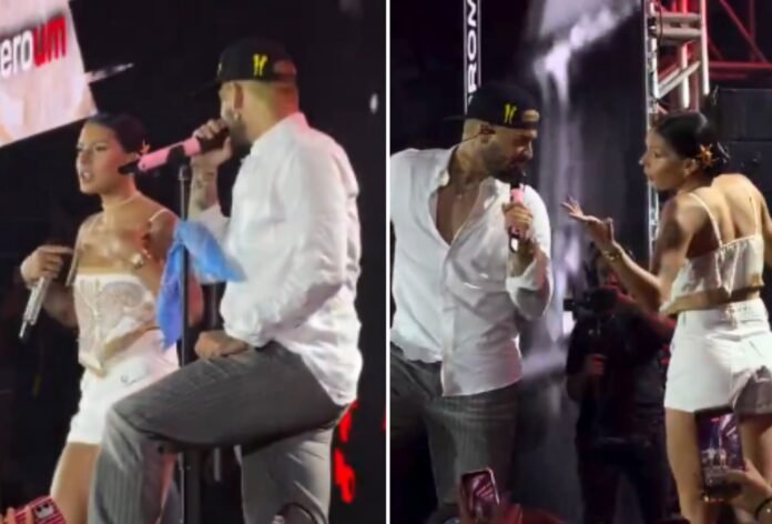 Ana Castela, de 22 anos de idade, e Zé Felipe, de 27, protagonizaram um momento que deu o que falar nas redes sociais nesta segunda-feira (5). Uma semana após anunciarem o fim do namoro, os cantores dividiram o palco do cruzeiro “Férias com a Boiadeira em Alto-Mar”, comandado pela artista, e a suposta tensão entre a dupla virou assunto na internet.Durante a apresentação da música “Sua Boca Mente”, parceria lançada pelos dois enquanto ainda eram um casal, Ana Castela subiu ao palco para cantar ao lado do ex. Apesar de honrarem o compromisso profissional, os internautas não deixaram passar o que interpretaram como um “clima pesado” entre os artistas.”A mona simplesmente não olha nem na cara do Zé Felipe”, apontou um usuário do X. “Ela está desconfortável ali”, comentou outro. “Ele fazendo questão de encarar ela o tempo todo e ela esquivando”, observou um terceiro.Web aponta ‘climão’ entre Ana Castela e Zé Felipe durante show em navioZé Felipe, filho do cantor Leonardo, já estava confirmado como atração do navio antes da separação. Após o término ser anunciado em 29 de dezembro, a presença dele chegou a ser questionada, mas o cantor confirmou que manteria o compromisso. “Hoje tem o navio da boiadeira e o pau vai quebrar grandemente, daquele jeitão que nós gosta”, disse ele nos stories antes de embarcar.O ex-casal assumiu o relacionamento publicamente em outubro de 2025, após meses de especulações. A relação durou cerca de dois meses e foi marcada por declarações intensas e parcerias musicais. No comunicado do término, Zé Felipe afirmou que a decisão foi consensual: “Conversamos e vimos que o melhor era cada um seguir o seu caminho. Eu a amo e sei que ela também me ama, mas decidimos seguir caminhos diferentes em busca de nossos objetivos individuais”.Ana Castela sobe ao palco e canta com Zé Felipe após términoWill Dias / Brazil NewsAna Castela sobe ao palco e canta com Zé Felipe após términoLeo Franco / AgNewsAna Castela sobe ao palco e canta com Zé Felipe após términoLeo Franco / AgNewsAna Castela sobe ao palco e canta com Zé Felipe após términoWill Dias / Brazil News