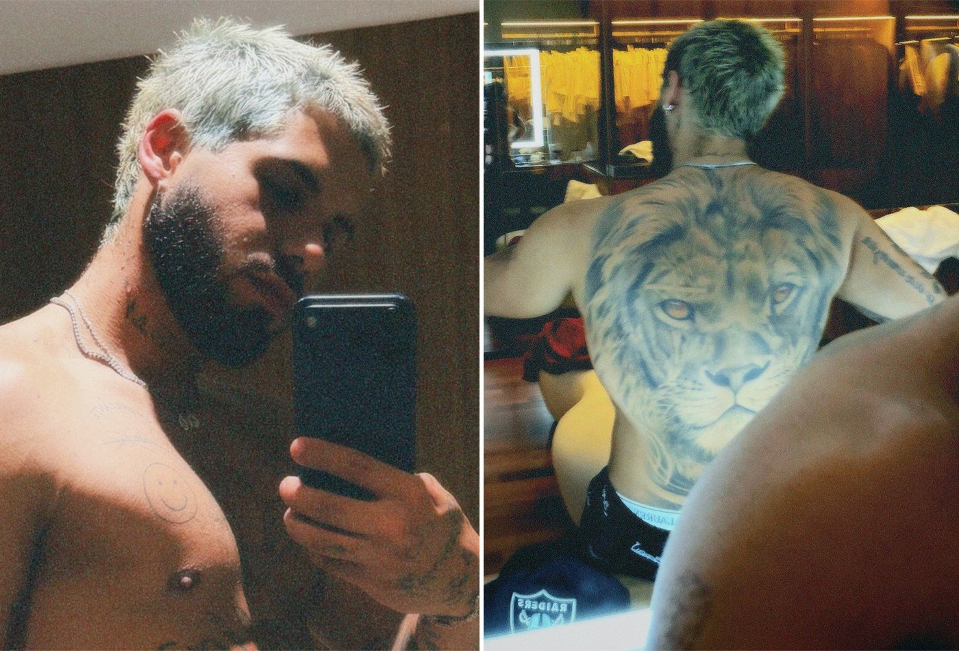 Zé Felipe, de 27 anos de idade, deixou internautas eufóricos, na noite de quarta-feira (25), ao postar fotos sem camiseta no seu perfil do Instagram. Só de cueca samba-canção, o cantor, que está solteiro após o fim de seu casamento com Virginia Fonseca e do seu namoro com Ana Castela, conquistou muitos elogios. “Boa noite”, limitou-se a escrever o filho de Poliana Rocha e Leonardo, exibindo algumas de suas muitas tatuagens e o abdômen sarado diante do espelho. Ele ainda postou uma imagem exibindo uma tatuagem enorme de um leão, que ocupa toda as suas costas.Elogios, claro, não faltaram para Zé.Zé FelipeReprodução/InstagramZé FelipeReprodução/InstagramZé FelipeReprodução/InstagramZé FelipeReprodução/Instagram